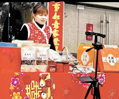 安徽安庆太湖县,工作人员在进行电商直播。资料图片